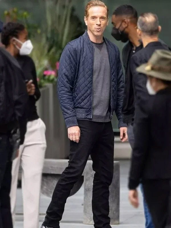 Damian Lewis Billions Blue Quilted Bomber Jacket