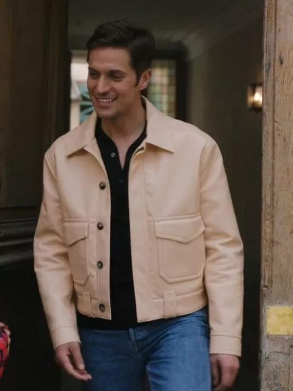 Emily in Paris Gabriel Beige Leather Jacket