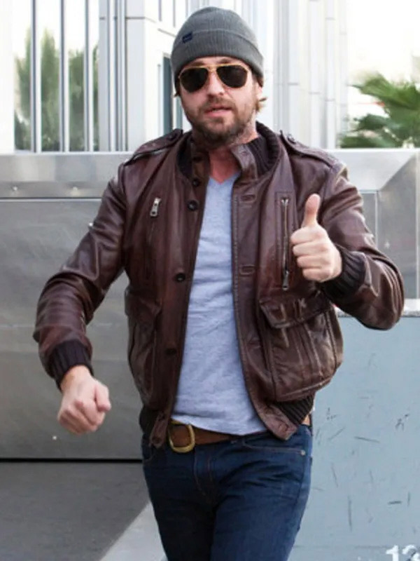 Gerard Butler Brown Bomber Jacket